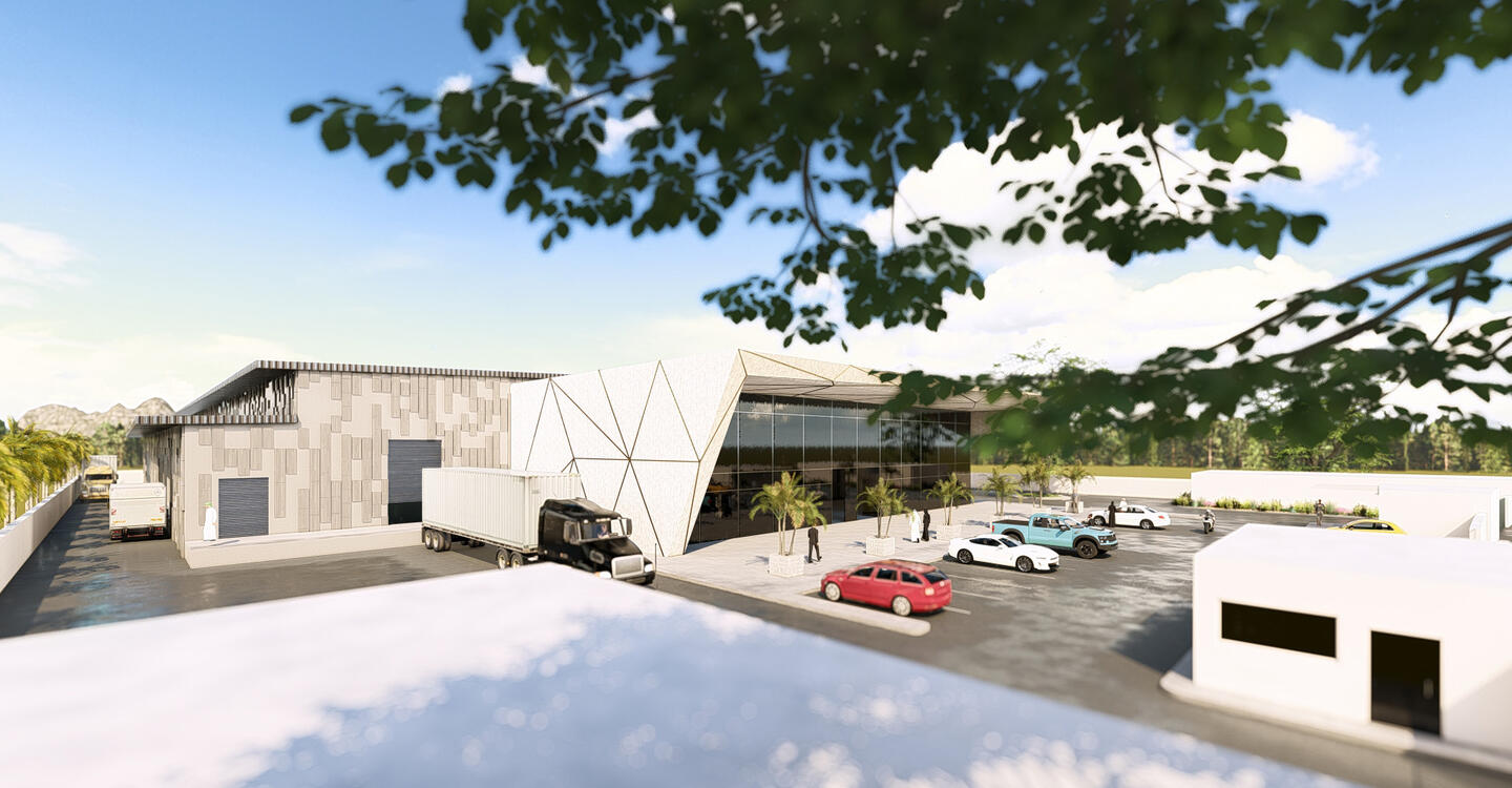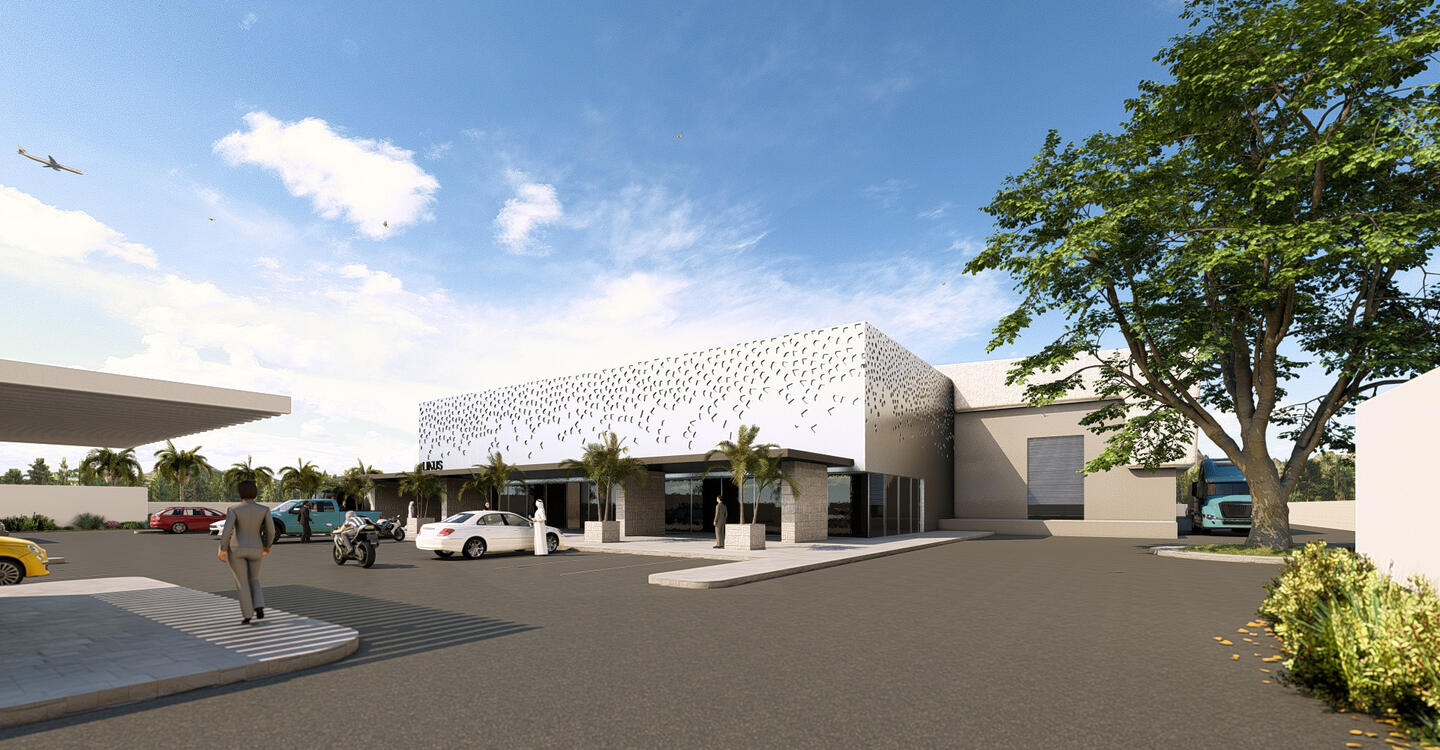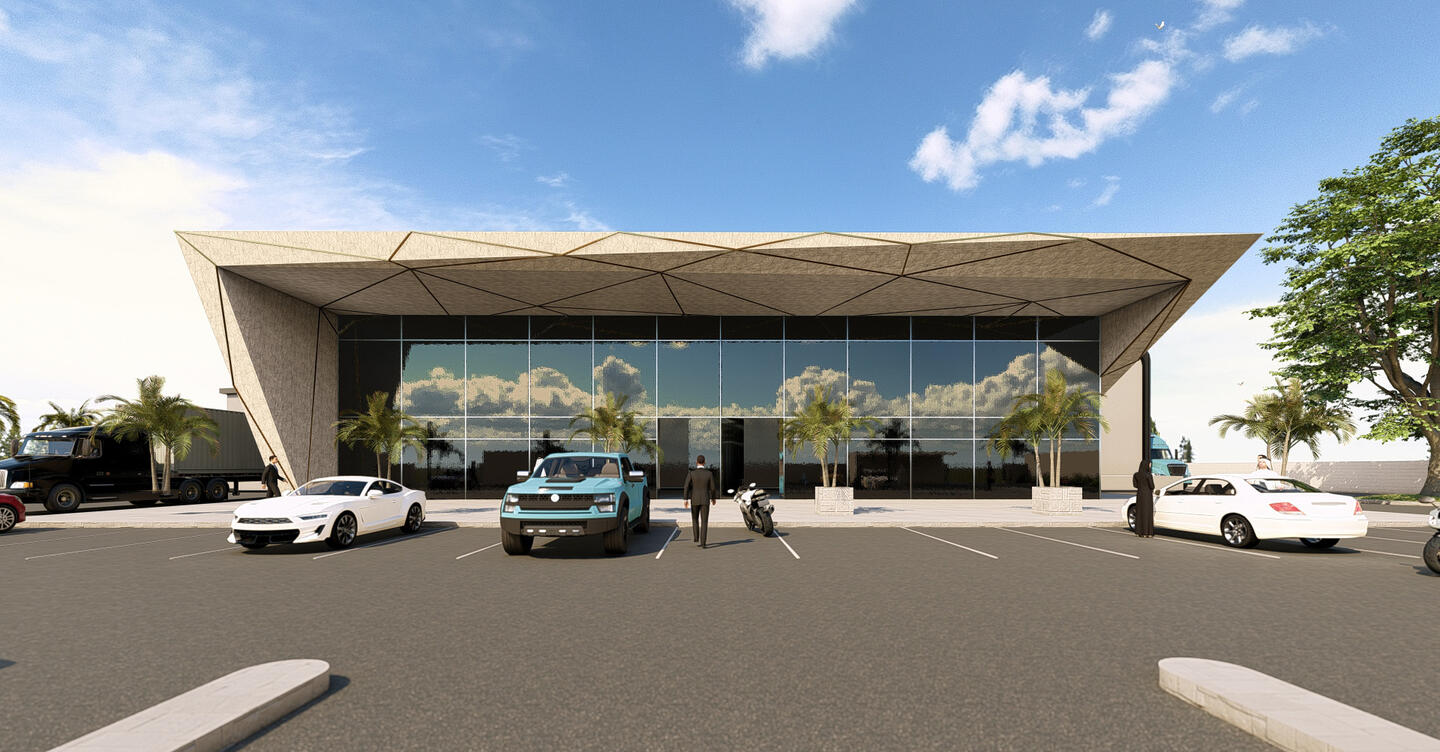 Design project for a Car showroom with a interesting structure and visibility challenge. Proposal included a 2D car on the rooftop to highlight the showroom on a busy road.