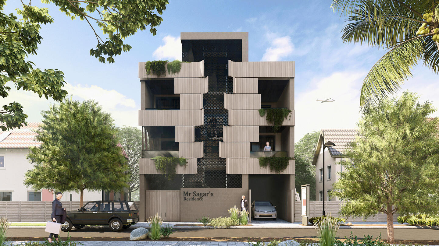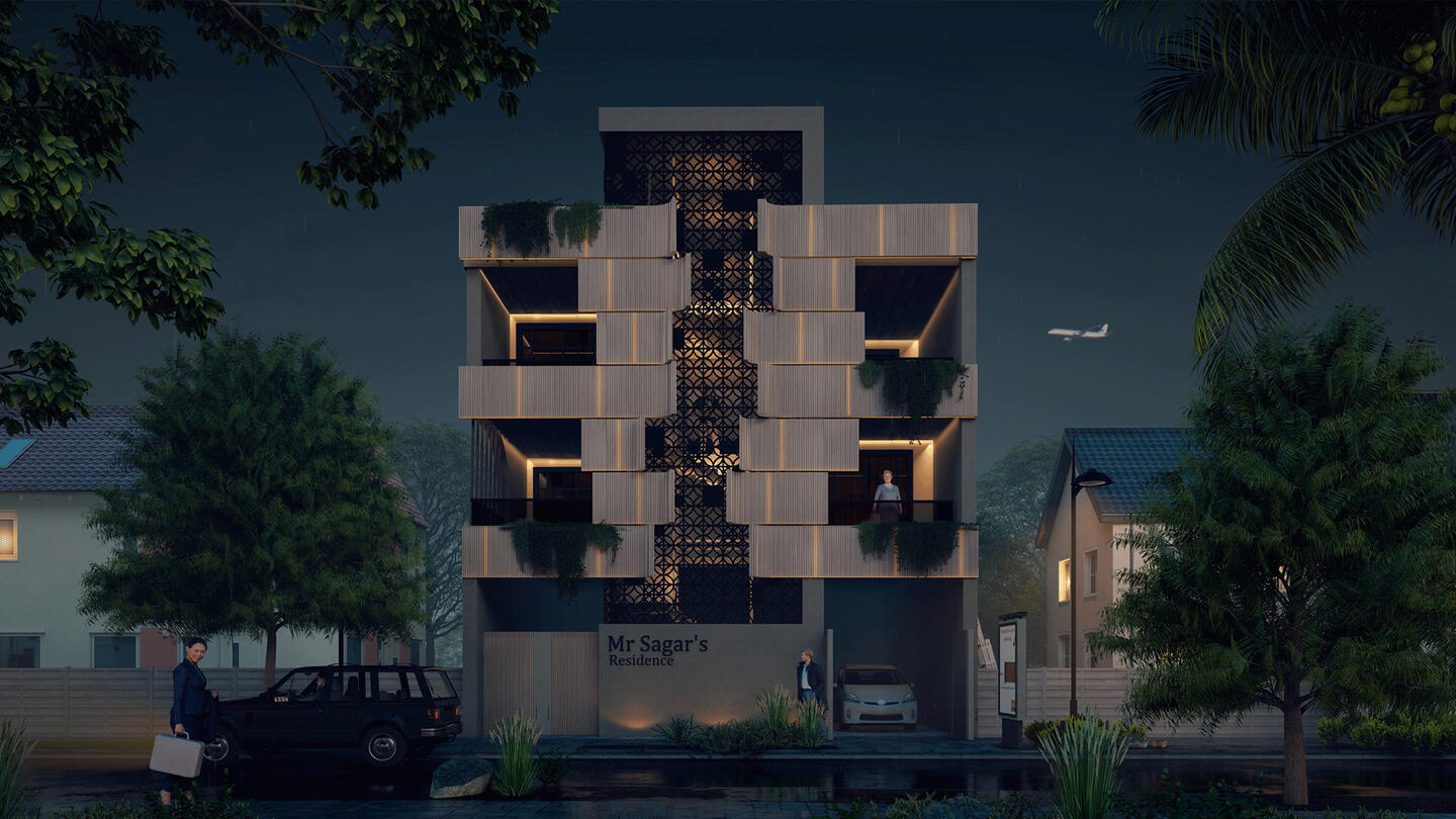 This residential project involved an expansion where the client aimed to extend the floorslab to the maximum site limit, enhancing the land value of the plot. A key challenge was to design a facade that adhered to building codes and site boundaries while transforming a typical box structure into an architecturally appealing design